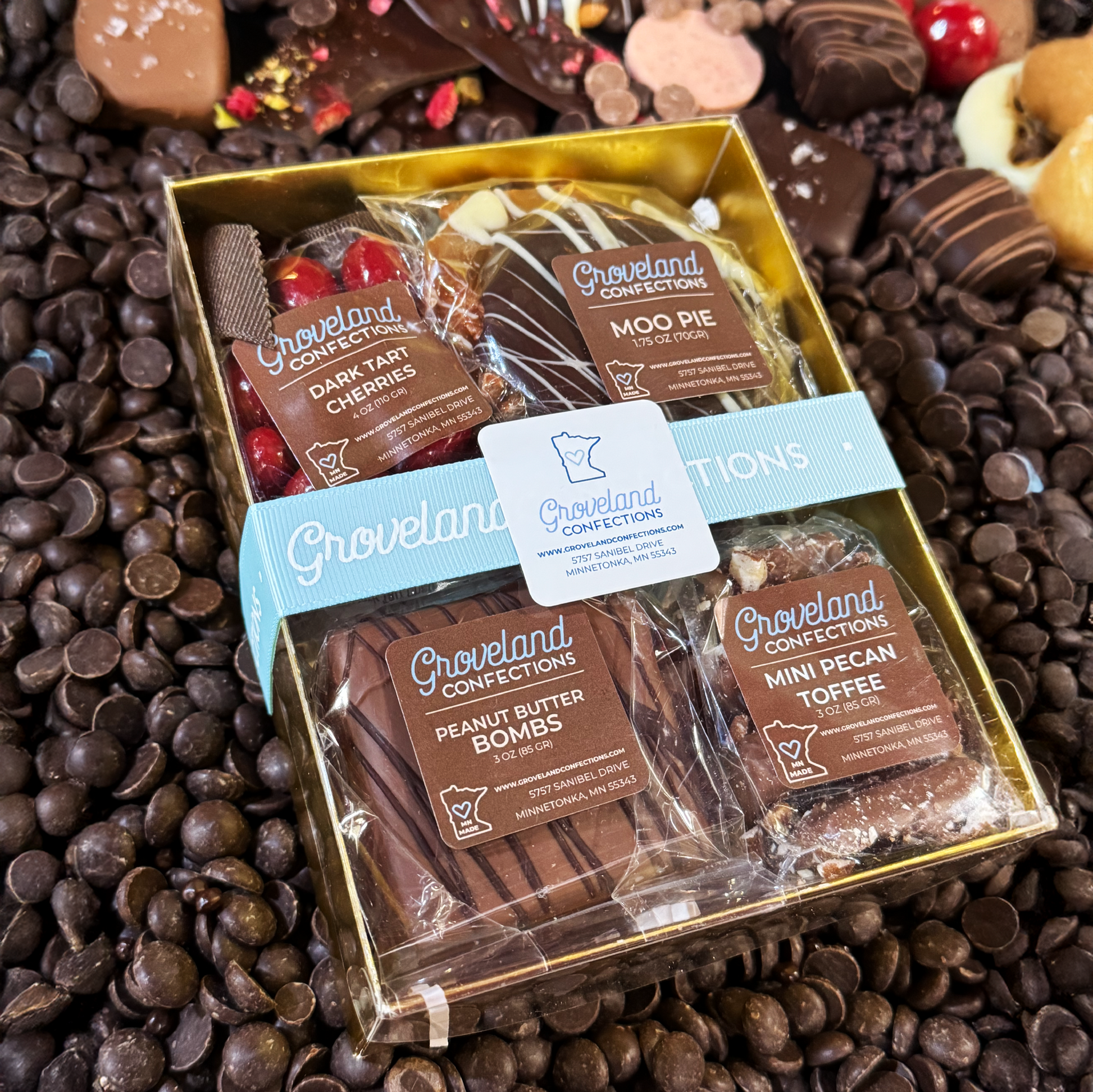 Our red, brown or silver gift box filled and wrapped with a beautiful bow makes for the perfect surprise.